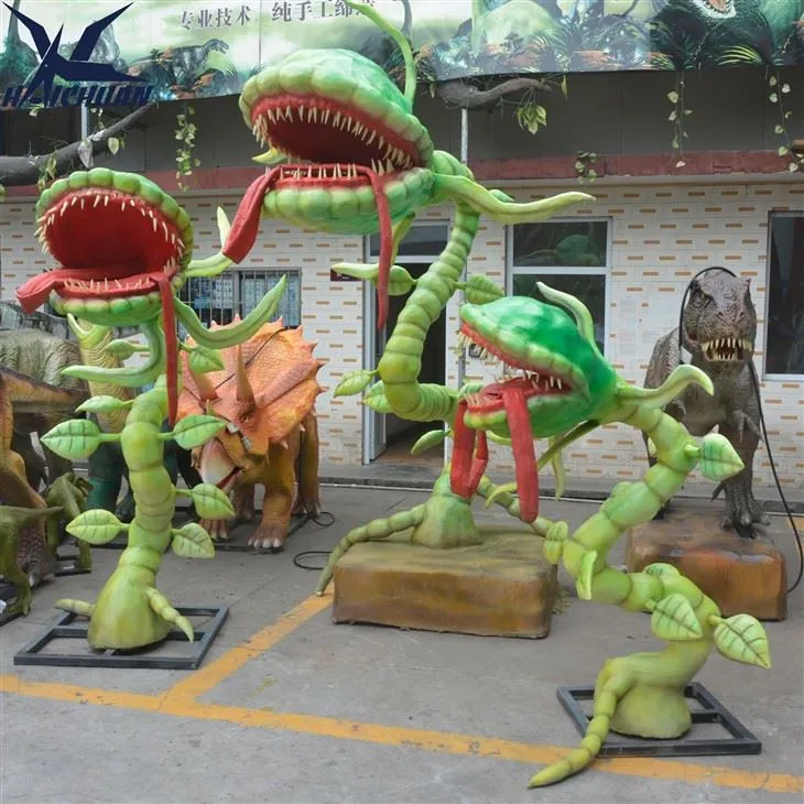 Aquesta flor animatrònica es pot utilitzar per decorar parcs, Halloween i altres escenes a l'aire lliure. L'obertura i el tancament de la boca s'acompanya d'un so espantós, i la imitació del moc vegetal afegeix un efecte visual aterridor. Podem personalitzar diferents flors caníbals segons les necessitats dels clients, només digueu-nos què us sembla.